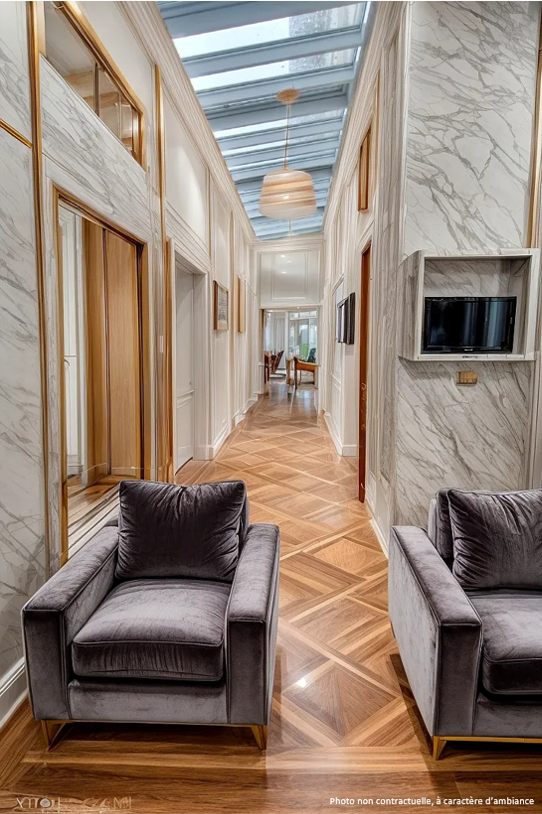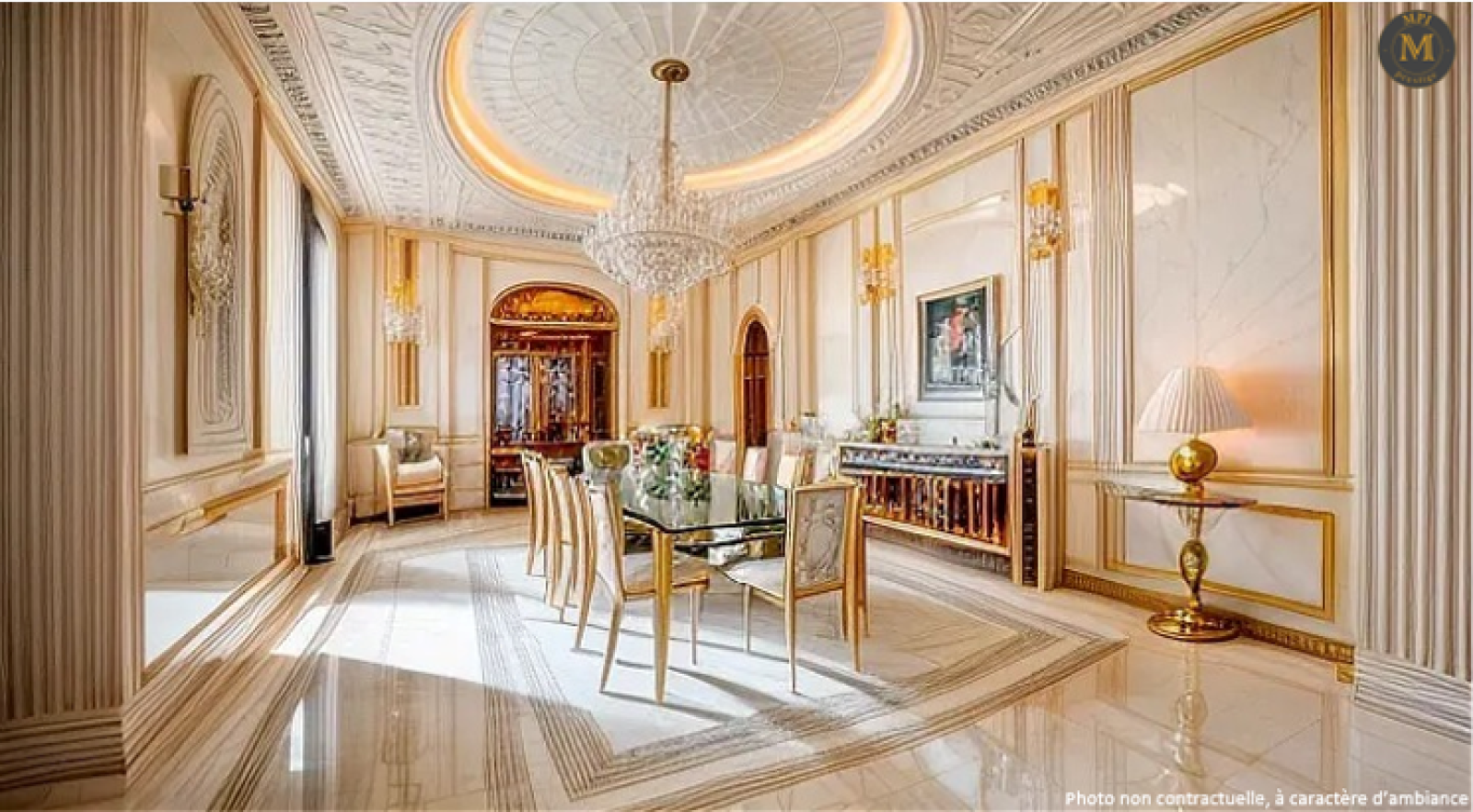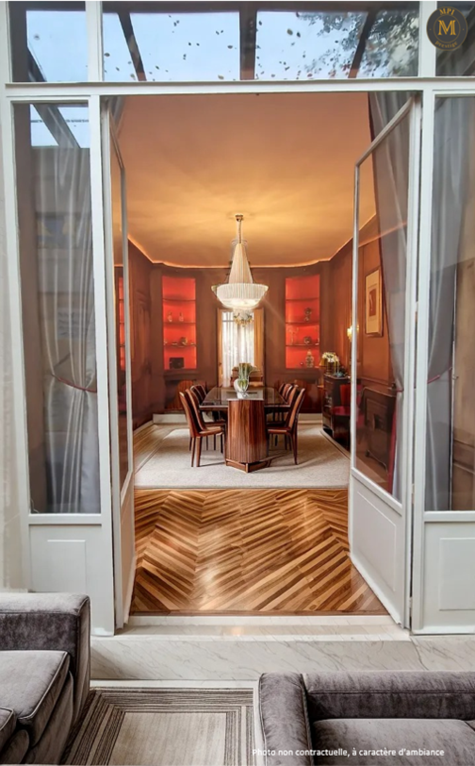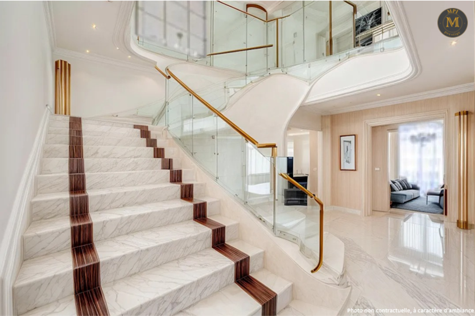 Cet appartement de 504,3 m2, en excellent état général, est situé dans un immeuble en pierre de taille des années 50. L'appartement est sur 3 niveaux, tous déservis par un ascenseur intèrieur et privé.
