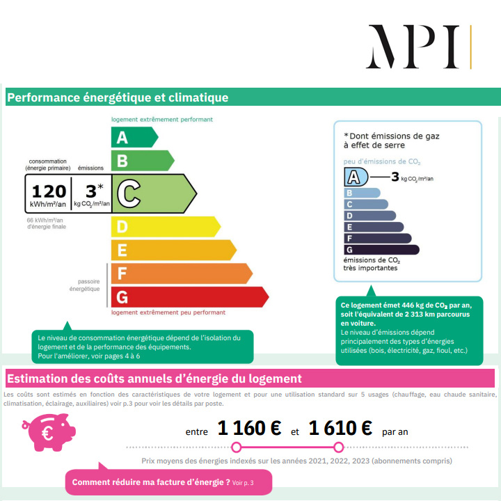 Estimation des coûts annuels d'énergie du logemententre 1.160 et 1.610 euros par an